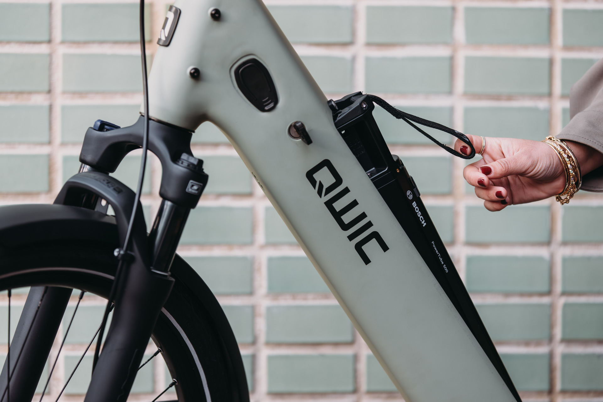 De Elan serie is standaard uitgerust met een Bosch Powertube 500 Wh accu (uitbreidbaar naar 625 Wh). Dankzij de slimme magnetische klep en handige textiele draaglus plaats en verwijder je de accu eenvoudig met één hand.
