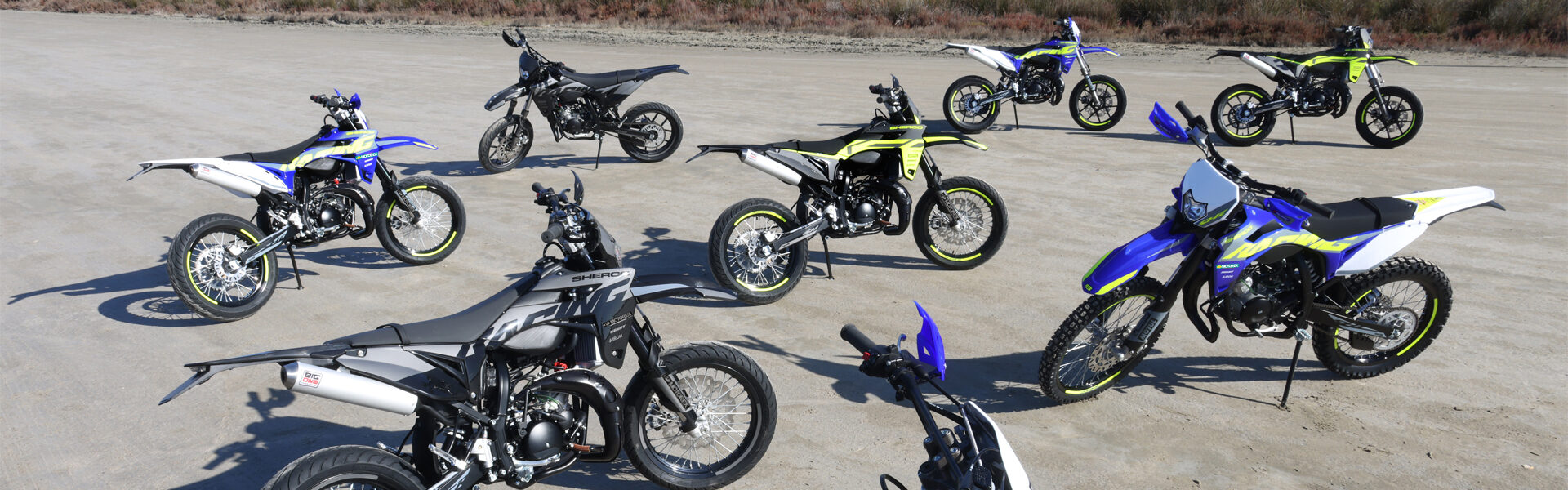 Wij verkopen de welbekende Sherco schakelbrommers zoals de SM Black Moon RS 50cc 2takt E5 met upside down voorvork en spaakwielen. Sherco is een bedrijf gevestigd in Frankrijk dat zich al jaren bewijst in de cross en endurowereld voor zijn uitstekende kwaliteit. Het lichte gewicht, in combinatie met het ijzersterke Minarelli AM6 Euro5 motorblok maakt de Sherco brommers dan ook kwalitatief sterke en betrouwbare bromfietsen. Uiteraard voeren wij ook het onderhoud en reparaties uit aan de Sherco schakelbrommers, dus op naar Haalderen bij Bemmel of bel: 0481-464569 of e-mail naar info@wheels2drive.nl, ook op afspraak